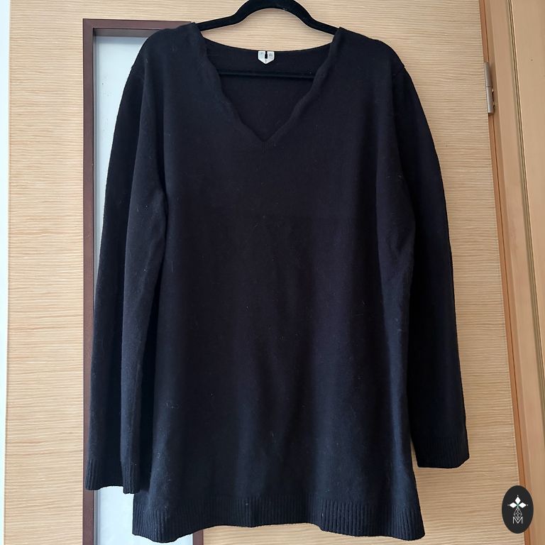 Dydis pažymėtas XS, aš dėvėjau S, pavaizduotas ant manekeno. Plotis po pažastimis 102 cm, juosmens 96 cm. Rankovės ilgis nuo peties 57 cm.