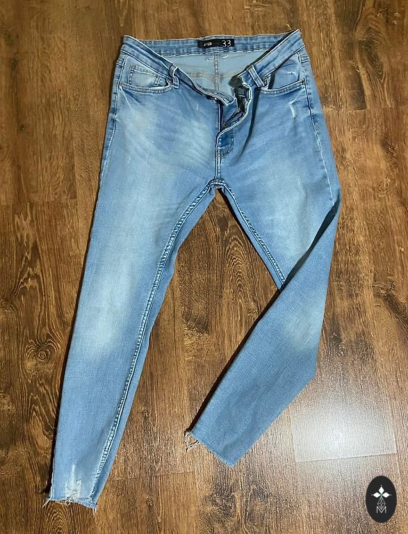 Vienu reizi vilkti džini. Ļoti labi izskatās uz auguma, vidēji zema jostas vieta, kas neliek vēderam izskatīties lielam. Bet garas staras, takā domāts garām dāmām. Visas bikses garums 112 cm. Izmērs 42. Cena +piegāde