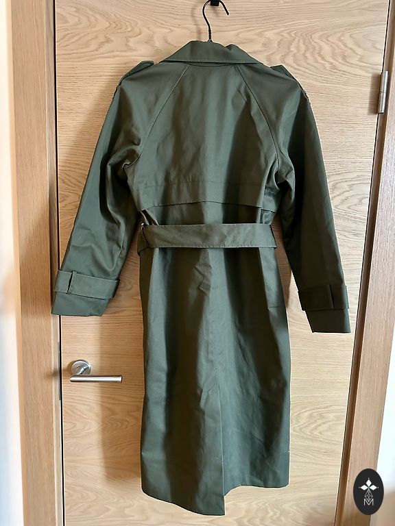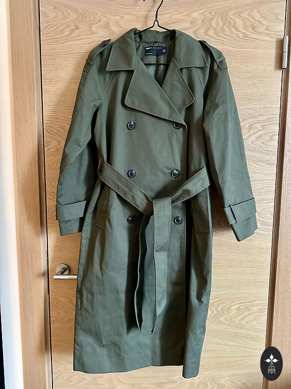 Jauns trenčs. Viens izmērs. Krūtīs 118 cm, garums 77 cm. Ar oderi.