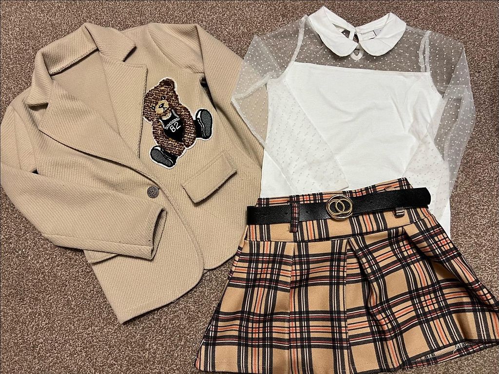 Karu kombinesoon ja bodysuit, mida on paar korda kantud. Väga ilus, kombinesoon ei ole kulunud, pestud õrnalt ja armastusega laste vastu. Märgitud 0-3 kuud, kuid ma ütleksin, et see sobiks ka hiljem. Väga ilus reaalses elus. Sobib ideaalselt külma ilmaga.