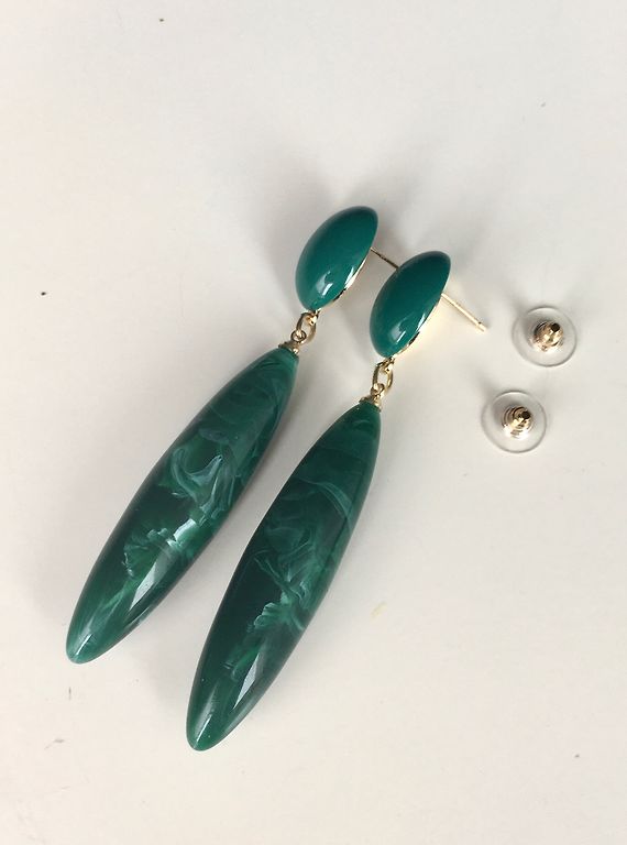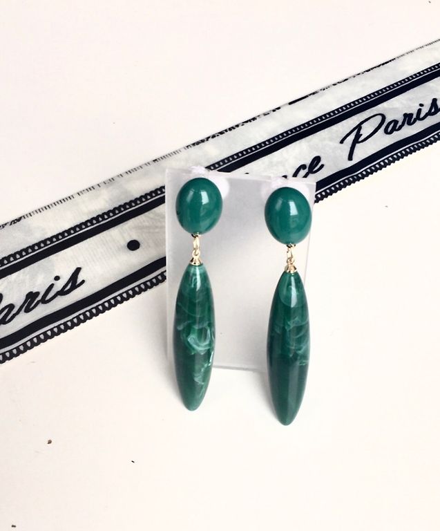 Vintage kõrvarõngad smaragdroheliste kivide ja kullatud raamiga. Ostetud Prantsusmaal vintage-poest 15 aastat tagasi, kunagi kandmata, kasutamisjälgi pole.