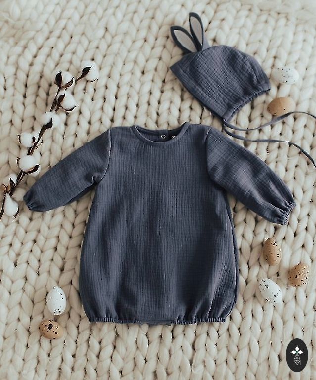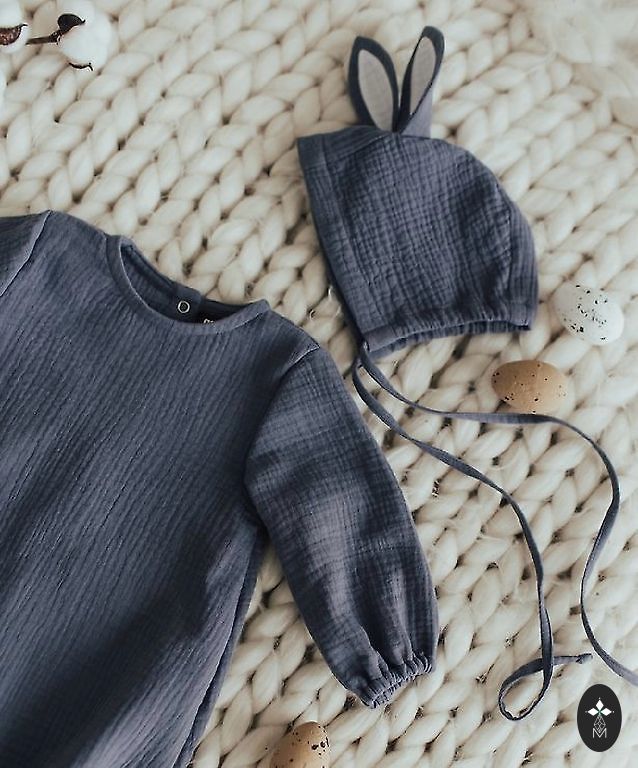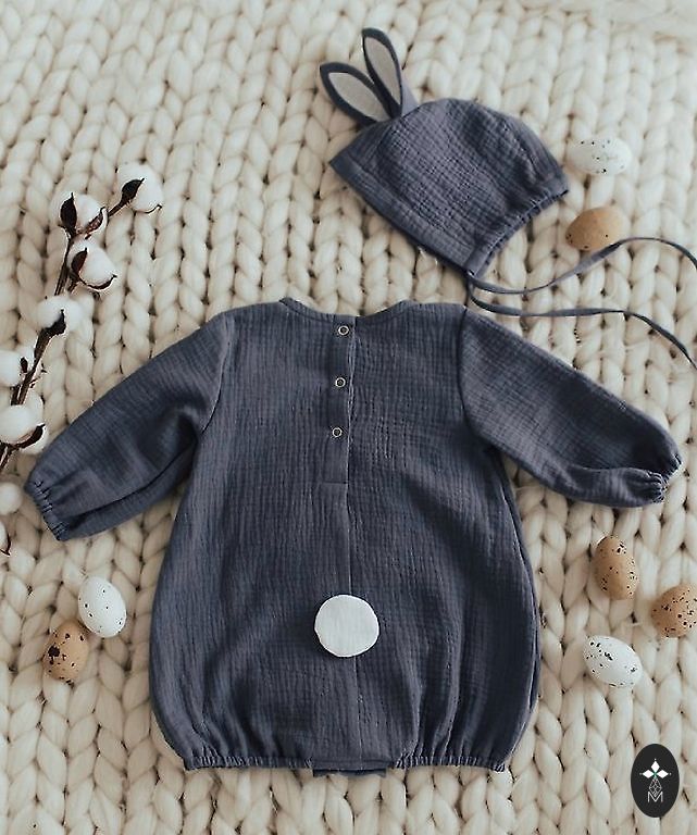 Jänese kombinesoon ja müts. 86/92, 1–2 aastat, kasvuruumiga. 100% musliin. Kvaliteetne õmblus.