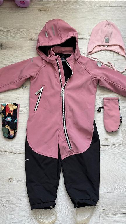 Межсезонный комбинезон Softshell, размер 80. Очень удобный и практичный в использовании, с небольшой подкладкой внутри. Имеются минимальные следы использования и потертости на резинках. Но их можно отрезать или пришить новые.