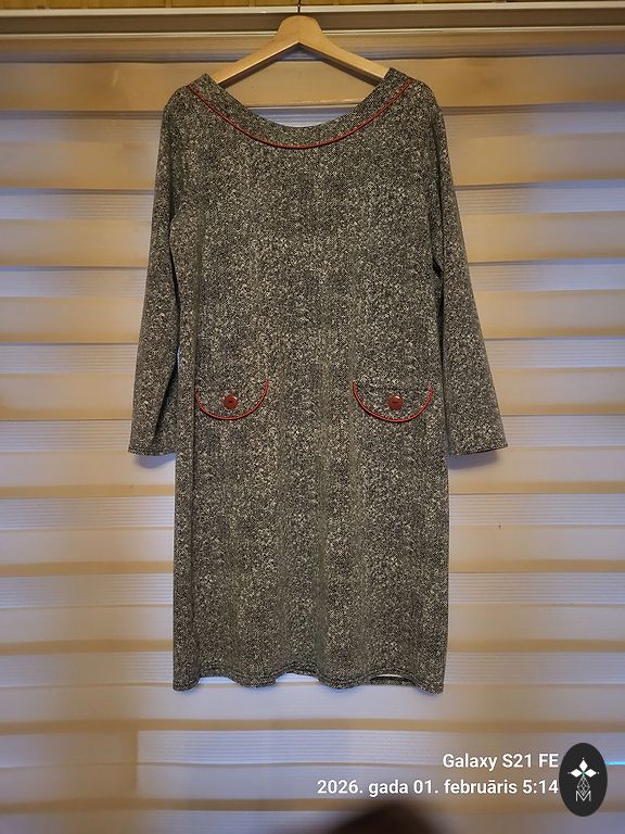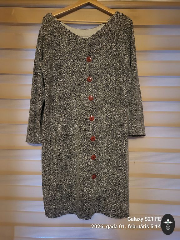 Kleita derēs uz L-XL izmēra,kleitas garums 100.cm,rokas garums 49.cm,krūšu apk.104.cm,plecos 44
