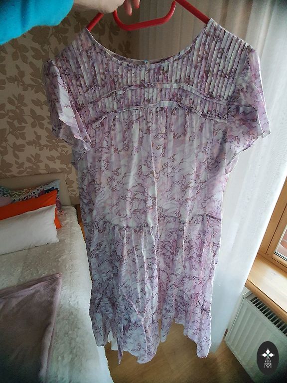 Smėlio spalvos gyvenime. Vidutinio storio. Šoninės kišenės. Ilgis 95-105 cm. Po pažastimis ir klubais 52-53 cm. Medvilnė, poliesteris, elastanas. Puikios būklės. Atsiprašau už nuotraukos kokybę! ANTRA PREKĖ UŽ PUSĘ KAINOS.
