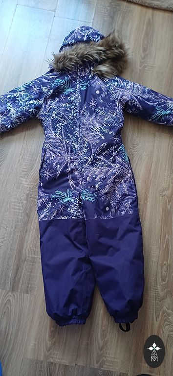 Jis buvo naudojamas kaip atsarginis komplektas, mažai naudotas, ant striukės rankovių matomi naudojimo ženklai. Kelnės neturi gumos, bet yra sagos, kad jas būtų galima pritvirtinti. Pridedama atitinkanti kepurė.
