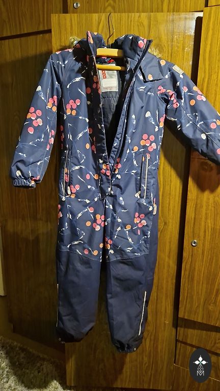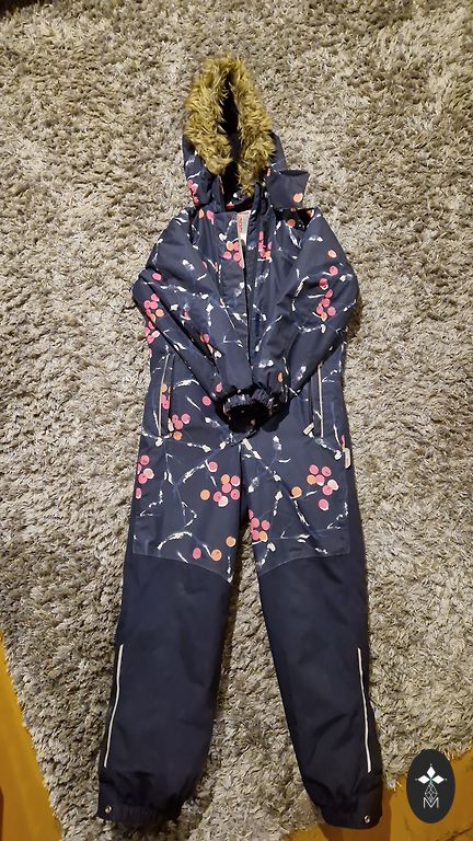 Devėjo vienas vaikas, vieną žiemą. Labai patogus kombinezonas. Graži ir praktiška spalva. Yra defektas, kurį galima pamatyti paskutinėje nuotraukoje, mažas skylutės ištrintos kojos viduje, tačiau netrukdo naudoti. Yra naudojimo ženklų šiek tiek ant kelių ir užpakalio, kitos dalys yra geros būklės.