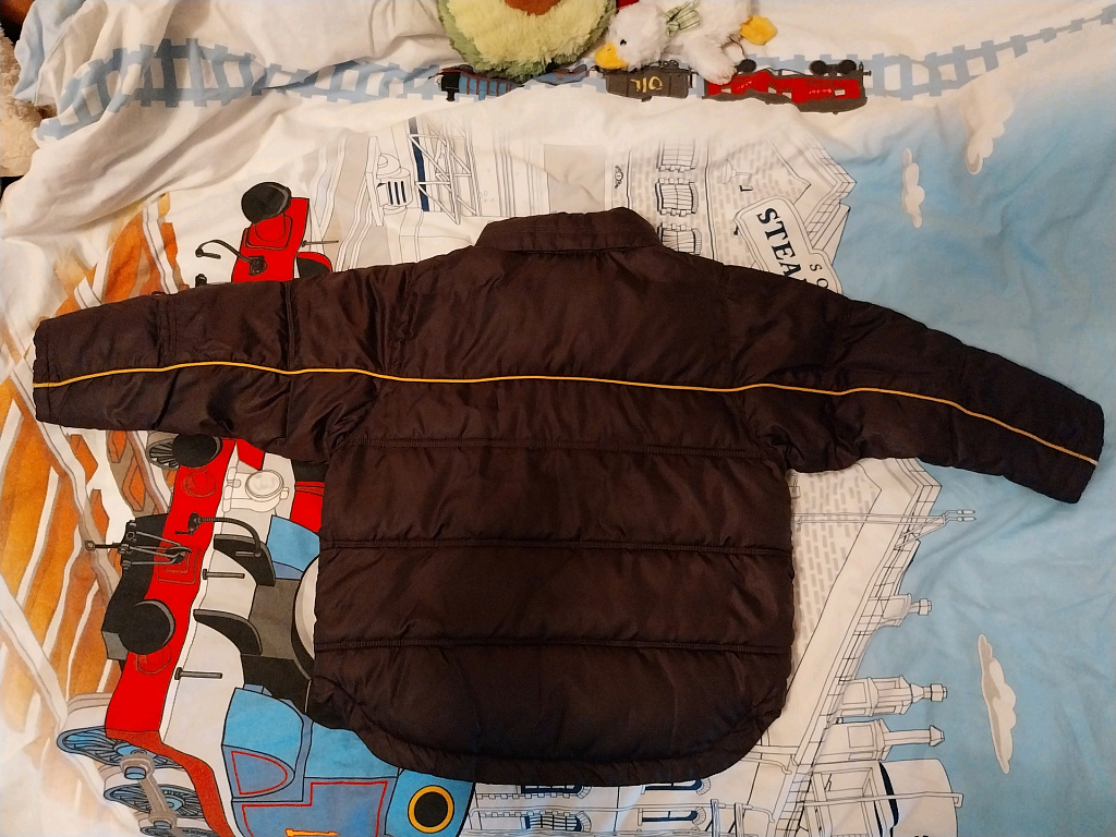 Talvejope. Mõlemad varrukad on veidi kulunud, kuid see ei mõjuta nende kasutusvõimalusi ega soojust. Ühel küünarnukil on väike plekk, mida ei saanud pesuga maha pesta.