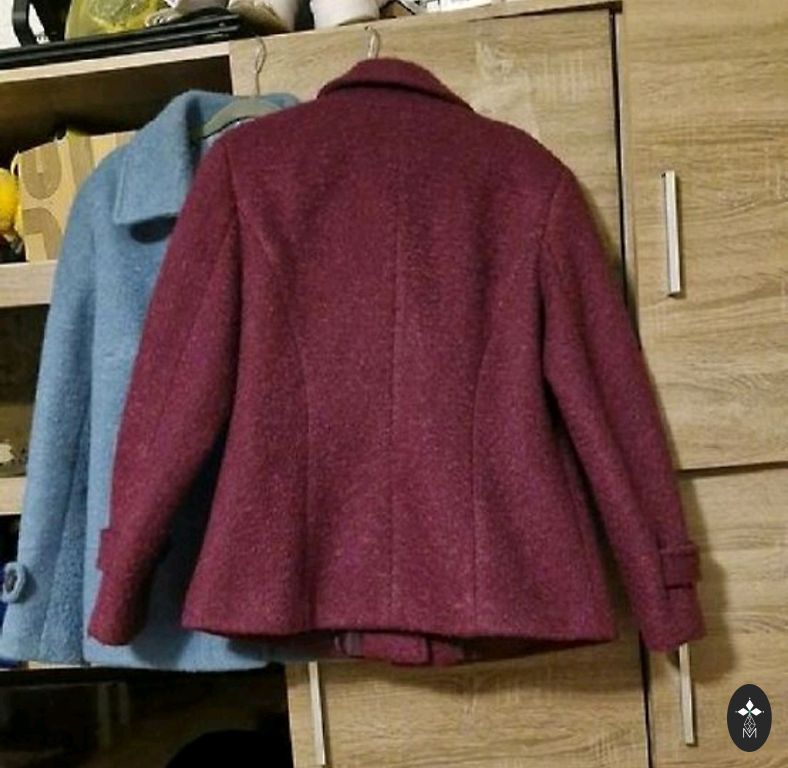 Villane mantel. Kerge, soe. Võib kanda vööga või ilma. Lõdva lõikega. Vill 60%, polüakrüül 40%.