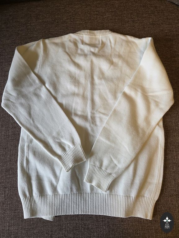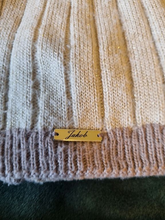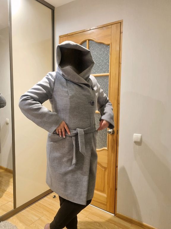 Naistele mõeldud silmkoeline kleit. Kleidi pikkus 95 cm, varruka pikkus 58 cm, vöökoht 41 x 2 cm.