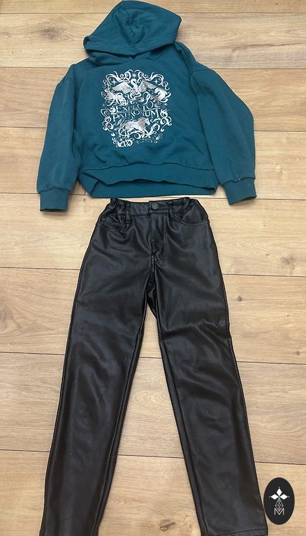 Komplekt koos kampsuniga ja pükstega on suurepärases seisukorras. Püksid on reguleeritavad.Loomulikult ei ole värvid enam nii eredad kui uued. Soovi korral lisan komplekti Lindexi kampsuni, püksid ja särgi – suurus 104/110, kuid püksid sobivad tegelikult ja me kasutasime suurus 98. Lisaks lisan veel ühe Lindexi pidžaama (suurus 98), mis pole fotol näha. Riietel, mida ma ära annan, on väikesed vead.