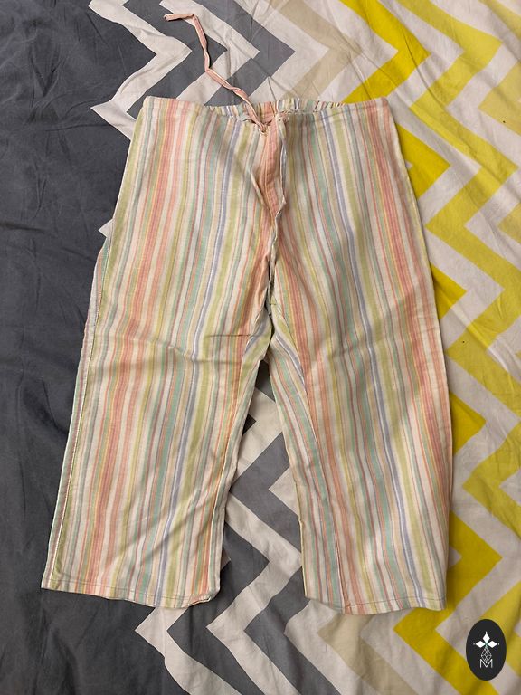 Kõik uued - kantud maksimaalselt üks kord. Laps otsustas, et kitsamad püksid ei ole enam kantavad. Helesinine - H&M, suurus 128. Vöökoht 26 cm, pikkus 78 cm