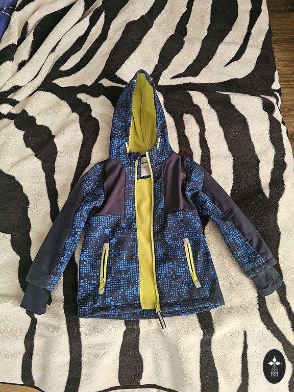 Reserved Eco aware striukė berniukui, 140 dydžio, garstyčių spalvos. Šiek tiek pailginta nugara, izoliuotas vidus, patogūs rankogaliai rankų galuose, didelis gobtuvas, užtrauktukas ir lipdukai užsegimui. Priekyje yra 2 erdvios kišenės. Pastebėjau 2 minimalius dėmelius - matoma nuotraukoje. Kaina nurodyta be pristatymo išlaidų.