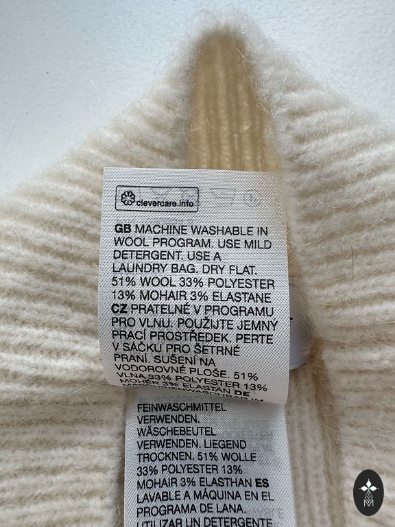 No defects, no signs of wear, wool composition, stretchy, very little pilling, adjustable cuffs
