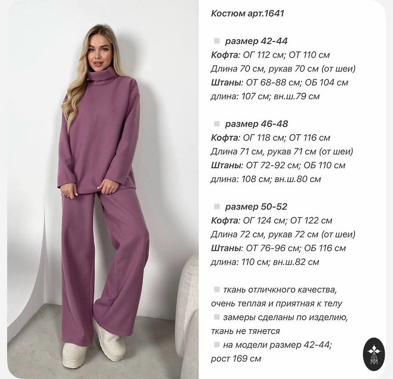 Suurus 32. Pükste pikkus 107 cm, sisemine sääre pikkus 83 cm, puusade ümbermõõt 47 cm, vöökoht 35 cm. Jope pikkus 54 cm, laius kaenla all 40 cm, varruka pikkus õlast 62 cm.