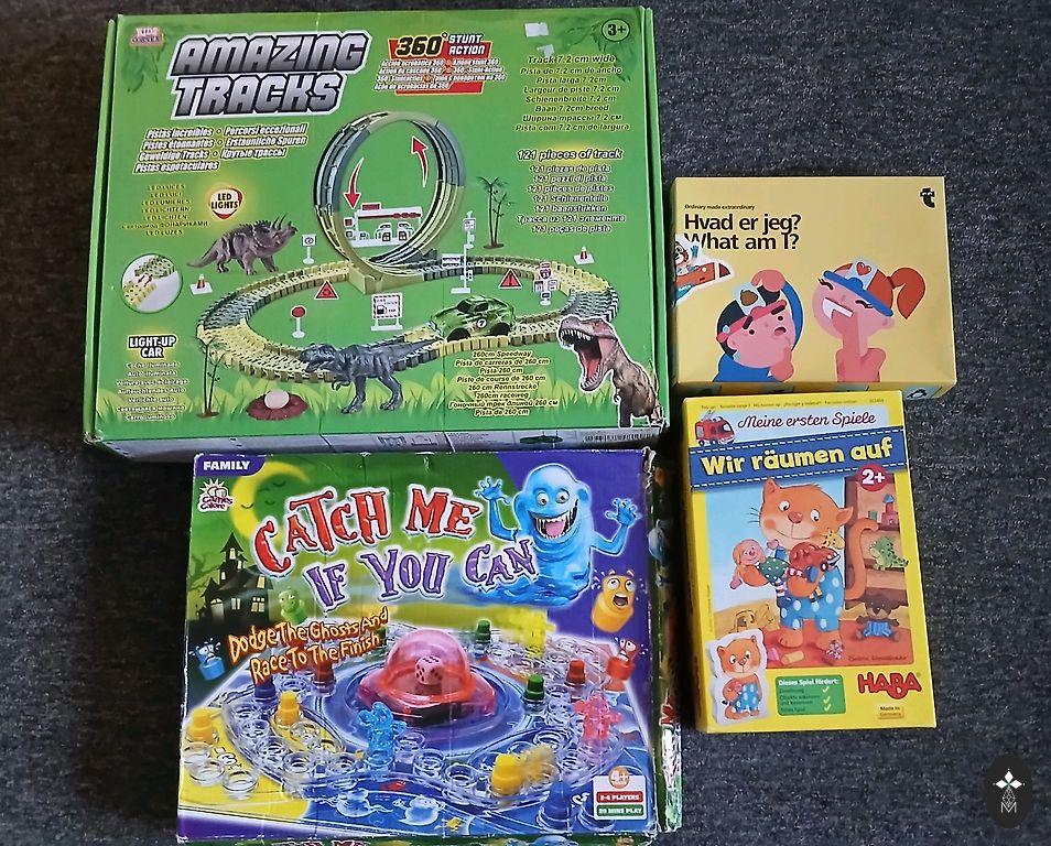 Väga populaarne lauamäng, mida on palju mängitud, seega on sellel kasutusjäljed – paljud kaardid on kortsunud ja täringud on veidi kulunud, kuid puudused on ainult visuaalsed ega häiri mängimist. Me mängisime seda juba enne karbil märgitud vanusepiirangut 6+. See arendab tähelepanuvõimet ja reaktsioonikiirust. Karp ja reeglid on vene keeles, kuid mäng ise on keelest sõltumatu. Reeglid läti keeles leiate aadressilt: