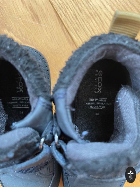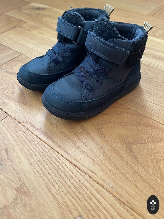 jumaldan Geox'i kui lastejalatseid. Saapad on kerged, mugavad takjakinnisega, ei lase niiskust läbi, kui ei seista kaua lompis. Peale minimaalseid väliseid kasutusjälgi muid defekte pole. Takjakinnis hoiab hästi 👌 veel saab joosta ja joosta.