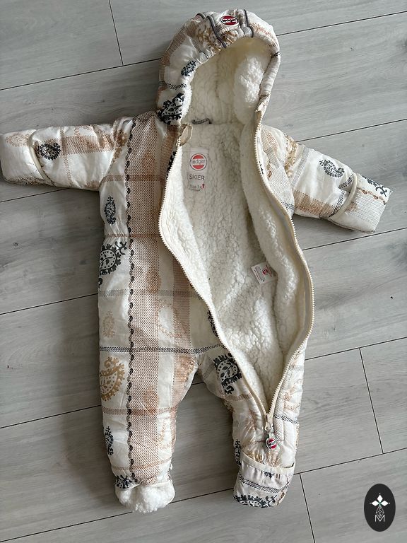 This is indeed a very awesome, functional, and practical jumpsuit-sleeping bag, as it's perfect for a stroller sleeper/sitter. Very soft, lightweight, and easy to put on. The sleeves can be folded. The legs can be made into a sleeping bag, or each leg separately, the ends can be fastened with snap buttons, and there are elastics at the ends. The hood comfortably fits around the head, as there's an elastic around it. Together with a stroller bag, it will be suitable for the entire winter. Length from shoulder to bottom is 65 cm.