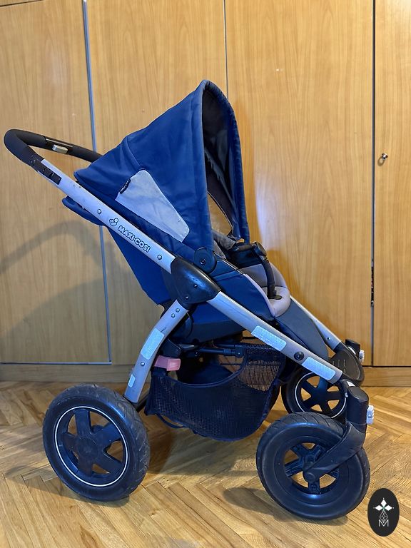 пляже удобно использовать большое колесо. Летом и по магазинам - маленькие колёса. Капюшон и чехол с ручкой перестёгиваются на обе части. Расположение в оба направления.
