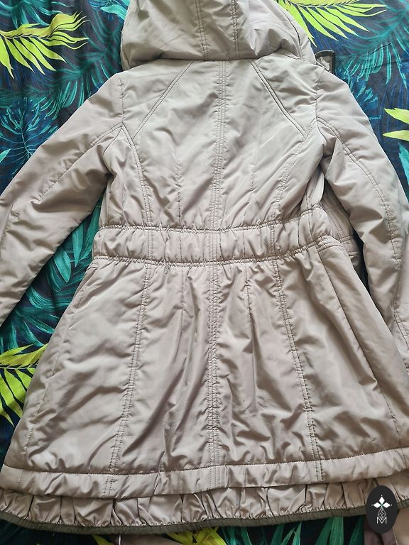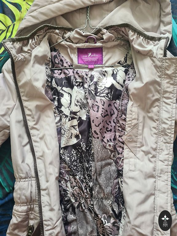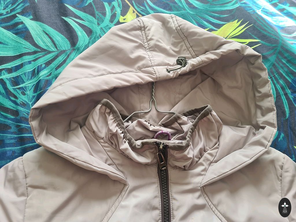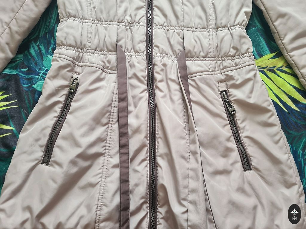 Taskud lukuga, kapuutsi saab tihedamalt kokku tõmmata, käte all klambrid, et saaks tihedamalt kokku tõmmata, sisemust all kinni nööpida ja tihedamalt kokku tõmmata.