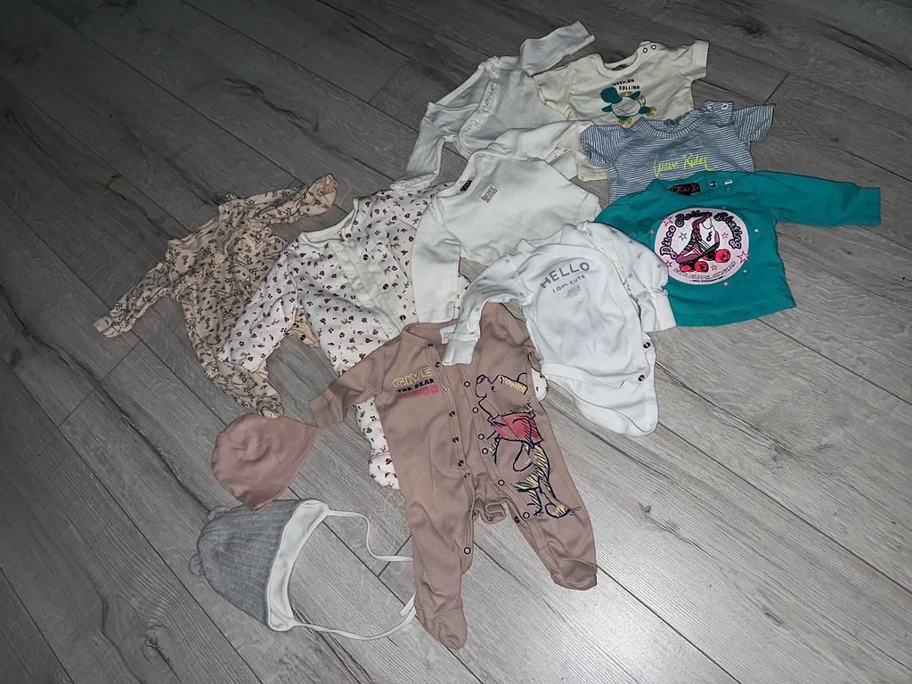 Mõlemad müüakse koos, hind on märgitud mõlema eest. Vähe kantud, sest suvel oli beebil liiga palav. Bodisid on kasutatud rohkem kui pükse. Ostetud Instagramist. Suurepärane seisukord. Pestud tundlike pesuvahenditega, ei ole pandud kuivatisse. Bodidel on sisseõmmeldud kindad, valge bodi õmblused on väljapoole. Mõlemad komplektid müün koos.