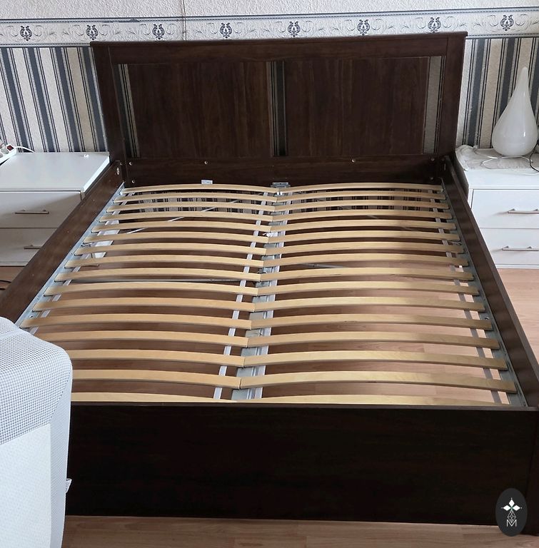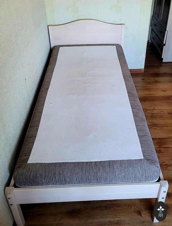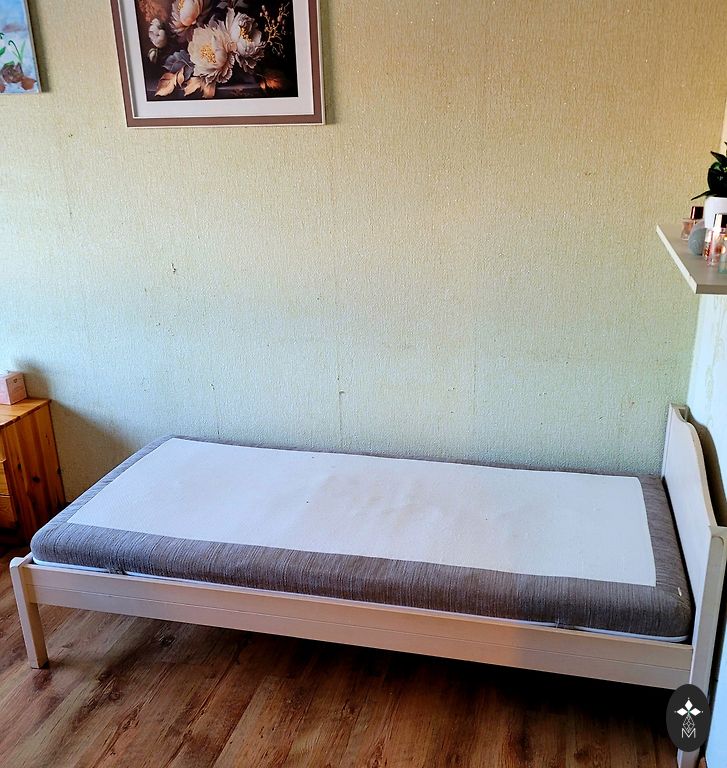 Каркас кровати из дерева 90x200см с рейками. Находится в Саулкрасты.