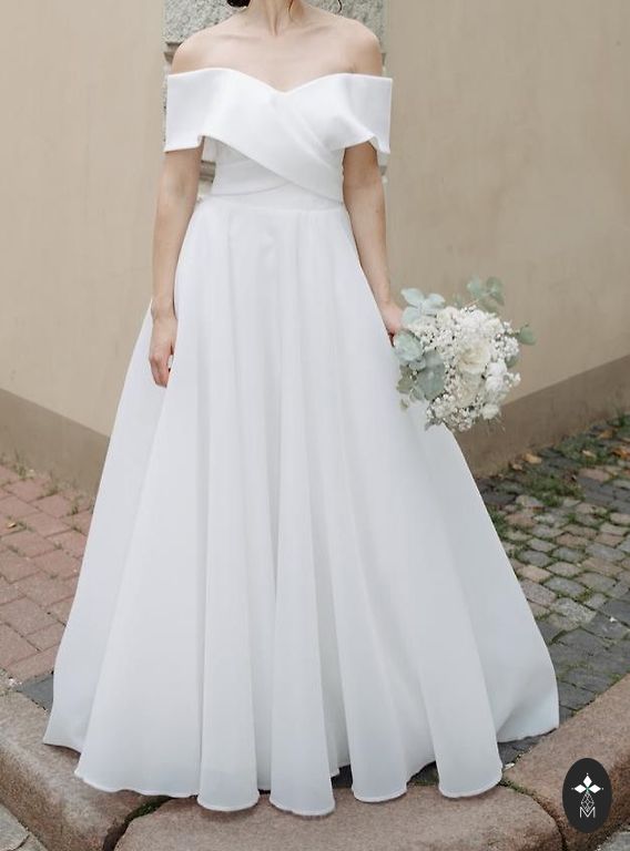Продаю свадебное платье в отличном состоянии, надето один раз. Платье корсетное, сзади шнуровка — хорошо регулируется по фигуре. Мой размер М, шнуровка была затянута почти на максимум. Модель со спущенными рукавами, есть разрез на левой ноге, подкладка и карманы, что делает платье не только красивым, но и удобным. Сидит идеально, подчеркивает талию и фигуру. После профессиональной чистки, полностью готово к новой свадьбе.