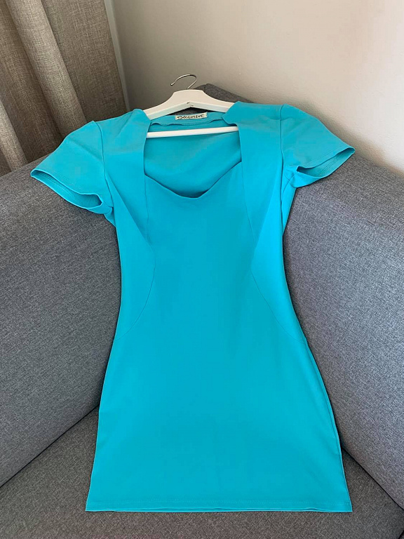 Pikkade varrukatega kleit, sidemed otstes ja volangid ees ja õlgadel. Pikkus 79 cm (mõõdetuna õlaliinist alumise servani).