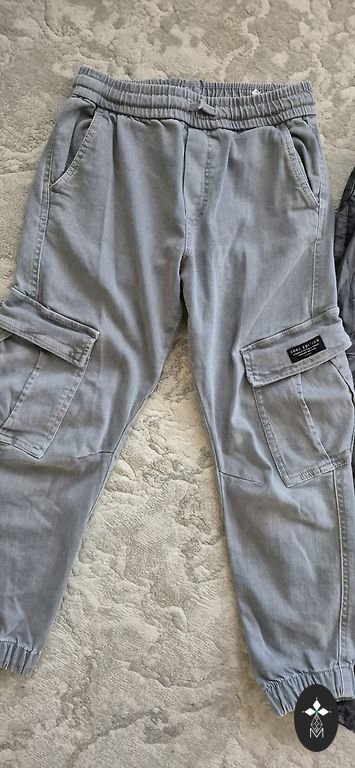 Утепленные хлопковые брюки. Носились 1 месяц, минимальные признаки износа. Лучше подойдет для размера 128/134, пояс можно затянуть.