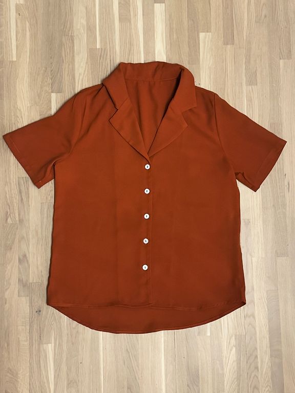 Satin wrap-style extended loose blouse in olive green with puffed sleeves. Fastens with a belt. Size S, fits XS-S-small M. Doesn't wrinkle when worn, so no need to worry about that. Comfortable, festive. You can also buy matching pants at Guntina.com, which makes for a very beautiful outfit. I have it, but I bought a larger blouse, so I only got to wear it once :D It looks just as beautiful in real life as it does on the model 💚