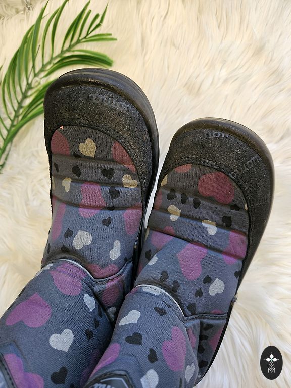 Šilti batai, skirti šaltam, bet ne drėgnam orui. Kaip trūkumą galima paminėti - šiek tiek nusilupusi spalva, vieno bato šiek tiek pažeistas priekinis galas, bet naudojimui netrukdo. Matoma paskutinėje nuotraukoje.
