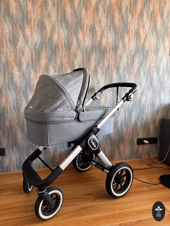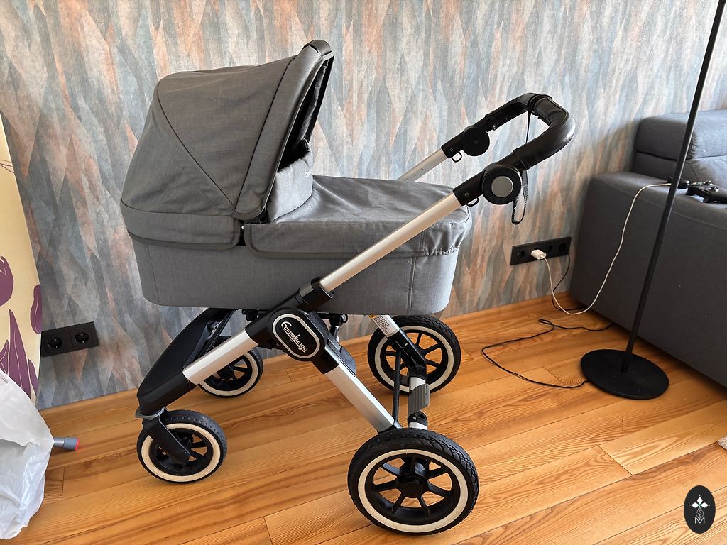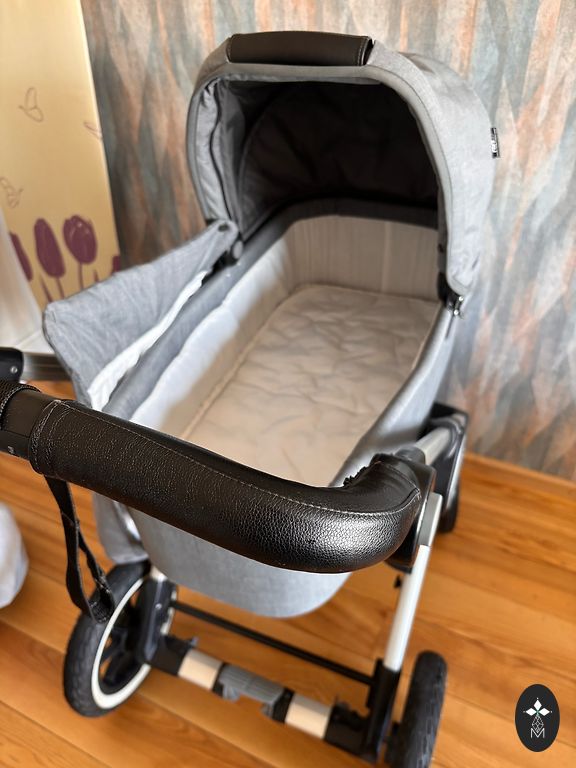 neatminos) un dzerts (tikai ūdens), tāpēc PA LIELAM nav īsti nekādu lietošanas pazīmju. Vienīgi, ka no ilgās stāvēšanas (pirkti 2022 gada rudenī) uz riepām bik parādījušies rūsas pleķīši un laikam pēdējā reizē sanāca bik pārpumpēt un atplīsa vaļā ventiļa vāciņš (gaiss ārā nelaižas). Cik ar sodu varēju – notīrīju (skat. 3 bildē pēc notīrīšanas). Katrā ziņā, funkcionāli tas netraucē un nav arī pamanāmi, ja neieskatās. 😊 Apskatot arī pārējās ratu daļas, pamanīju, ka bik rūsiņš ir arī uz groza skrūvēm un, ka kulbas plānā auduma (var noņemt un izmazgāt) gumijai vienā mazā vietiņā bik iedzeltējis. Tas varbūt arī no stāvēšanas vai kāds mazītiņš vēmieniņš nepamanīts, bet ja neieskatās – neredz. Ratu audums nav mazgāts (ir tīrs), bet pārdevējs apgalvoja, ka VISUS audumus pirms lietošanas vai nepieciešamības varot noņemt un saudzīgā režīmā izmazgāt. 😊 Piedodiet, bet diemžēl to neapņemšos darīt, jo katram vecākam savi uzskati par savam bērnam piemērotu mazgāšanas līdzekli. 😊 Sīkāku info var apskatīt saitē uz veikalu, kur to iegādājāmies. 😊