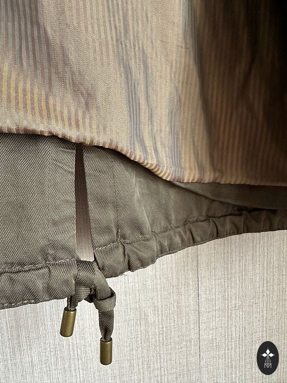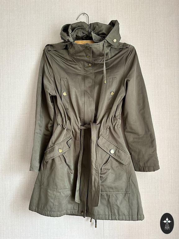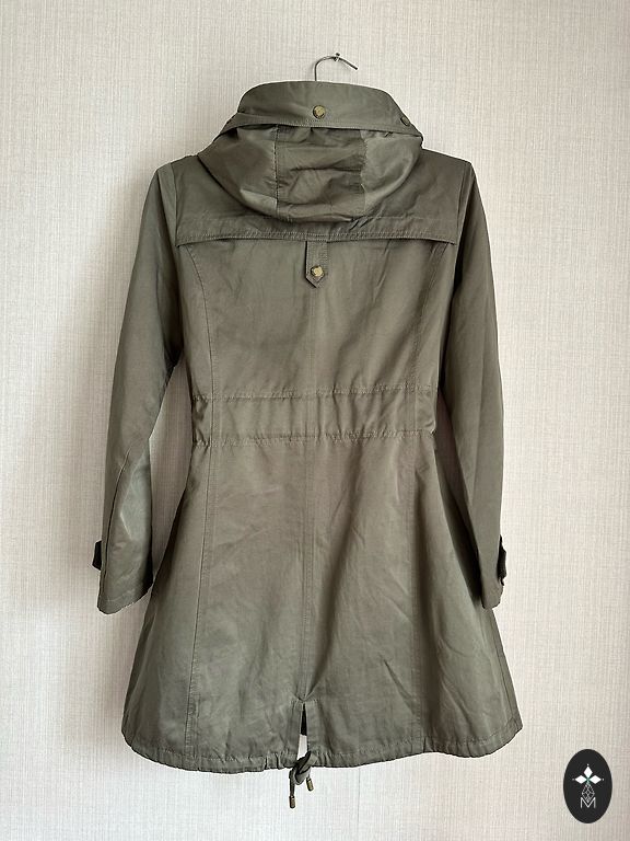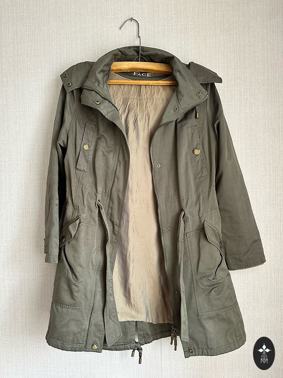 Незаметные ярлыки и примерка, чтобы понять, что это не мое. Парка с пристегивающимся жилетом. И парка, и жилет имеют застежки-молнии. Жилет можно носить отдельно. Длина жилета 85 см, парки 90 см. Цвет хаки.