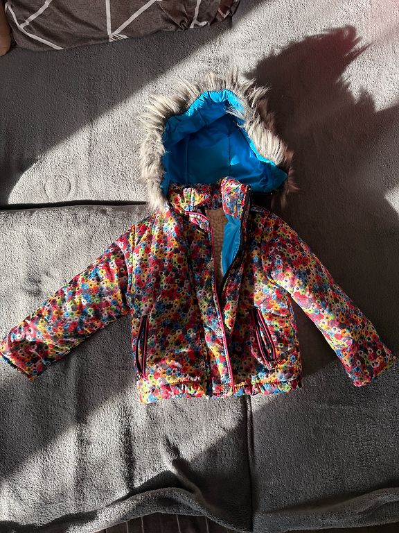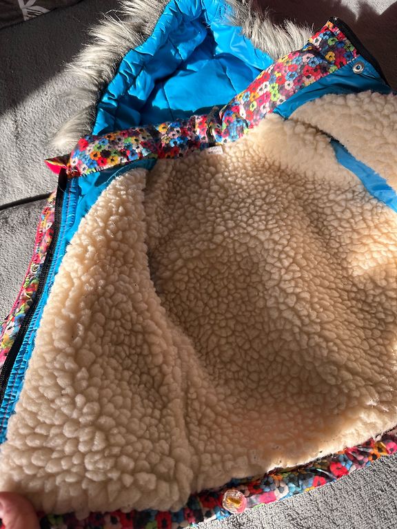 Selling a leather jacket + scarf and hat. With a fluffy interior indicated for 3 years.