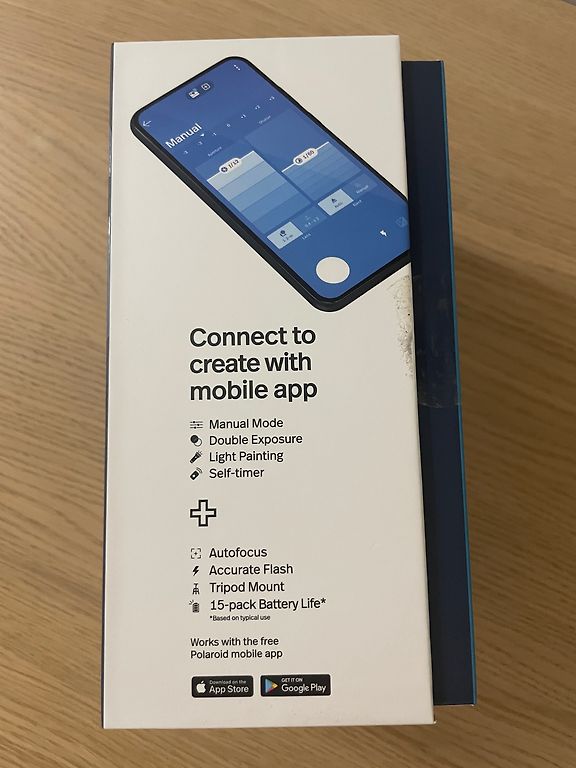 Suurepärases seisukorras, karp + rihm. Töötab suurepäraselt — praktiliselt nagu uus: kasutatud üks kord. Filmi pole. Ühildub Polaroid i-Type ja 600 filmidega.