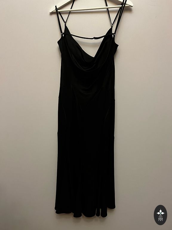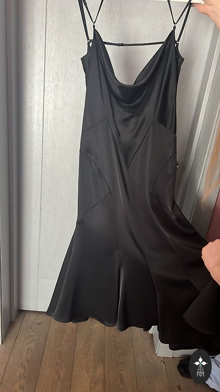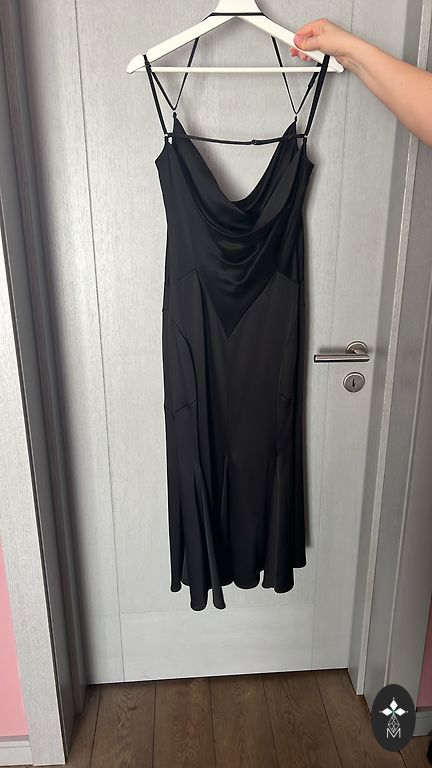 Preen By Thornton Bregazzi must Bergman kleit Kokteilikleit poolpikkade vasikatega. Pikad varrukad, avatud dekoltee ja veidi avatud seljaosa, väga laia seeliku siluetiga, taskud, pikkus põlvedest allpool. Raske elastaan, näeb välja väga efektiivne. Pikkus 120 cm