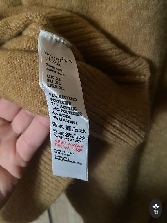 Kampsun ei ole puhas vill, vaid sisaldab ka 30% polüestrit, sobib ka M suuruses kandjale.