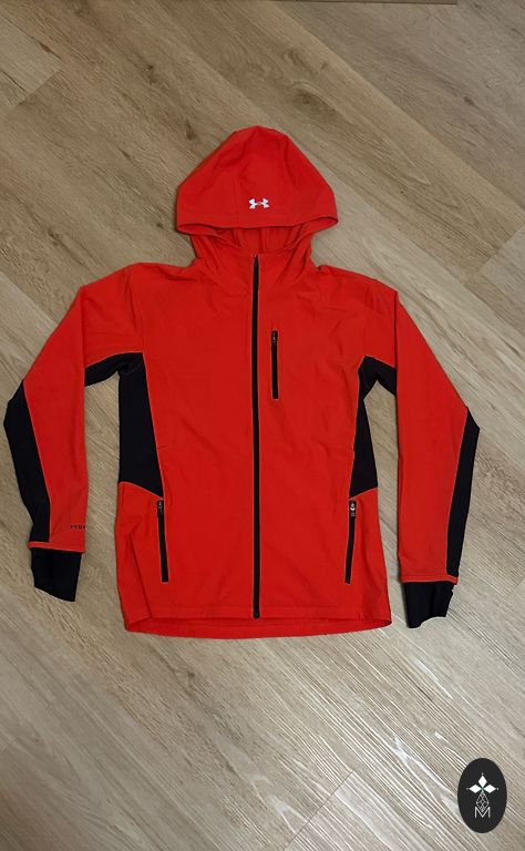 Brīvā laika jaka ar slēgtām ārējām kabatām un vienu iekšējo kabatu (ar rāvējslēdzēju). S/M izmērs. Jaka bez defektiem. Jakas garums 69cm, krūšu apkārtmērs 100cm, apakšējās malas/gurnu apkārtmērs 108cm, roku garums ap 58cm.