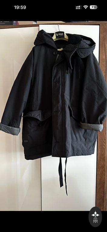 Handmade, ar jostiņu,kabatām un skaistu lielu apkakli. Krūtīs-60cm, no pleca līdz pied.galam-70cm, kopējais garums no pleca-105cm. Vilkta pāris reizes. Ļoti labā stāvoklī.