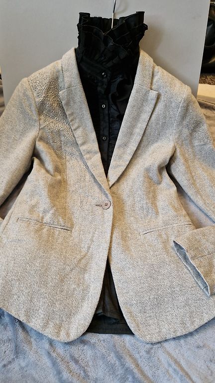 Состав 50% хлопок. Вокруг талии пояс. Рукава баллонного типа и разрез сзади.