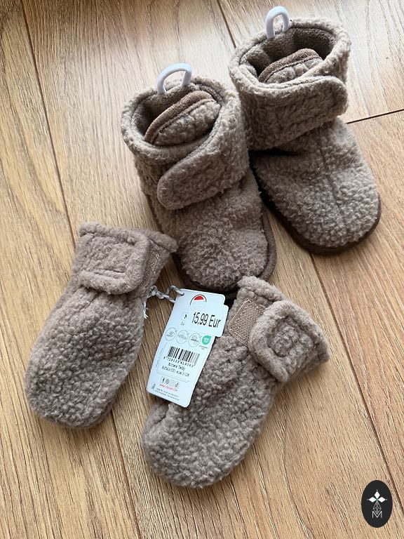 Müts (suurus 38/40, 0–2 kuud) ja kindad.