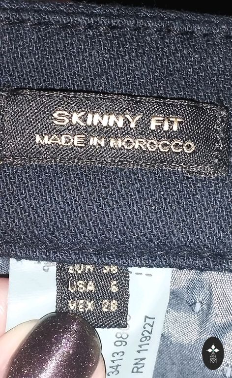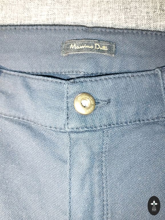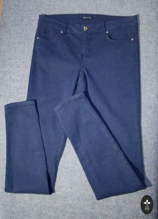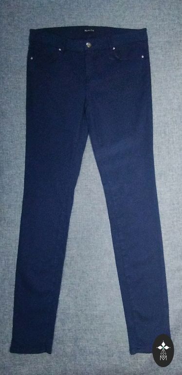 Side pockets, jeans with white stitching, straight, pleats. Narrow at the hips. Size 34 / 160/64A