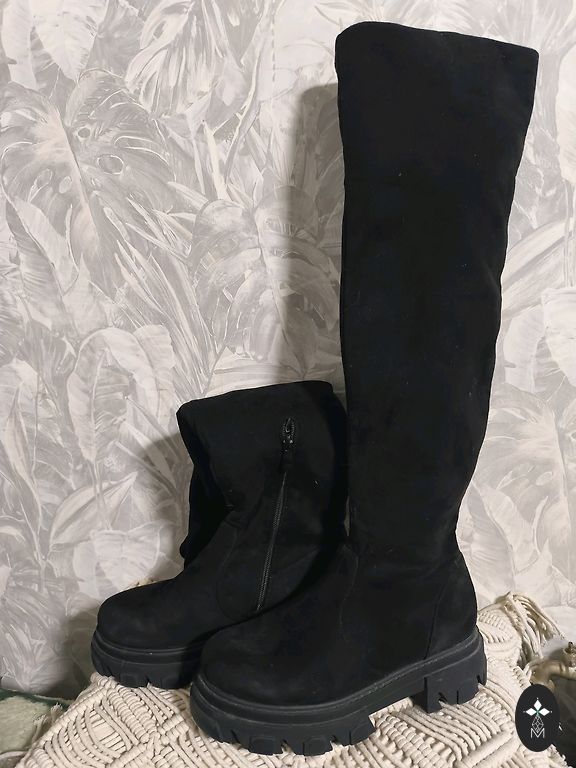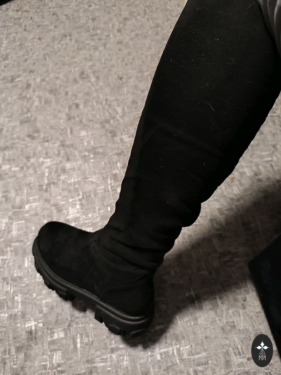 Mustad seemisnahast saapad kontsaga. Väga soojad, lambavilla voodriga. Kirjutatud suurus 38, kuid sobib 39 jalale. Marcin Collection. Ühel kontsal on näha väikesed defektid-kriimustused.