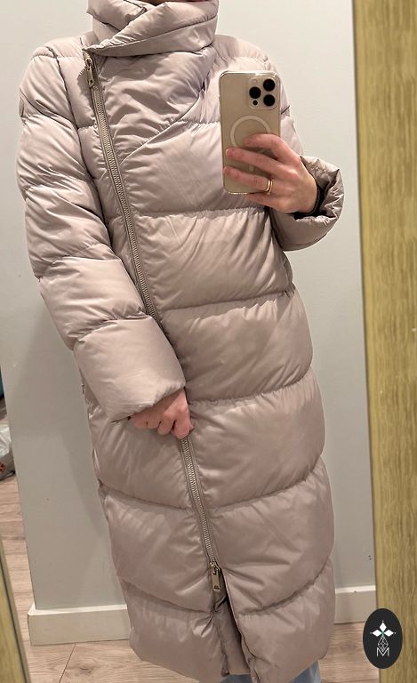 Warm down jacket with a detachable hood. Width under the armpits - 59cm, length - 76cm.