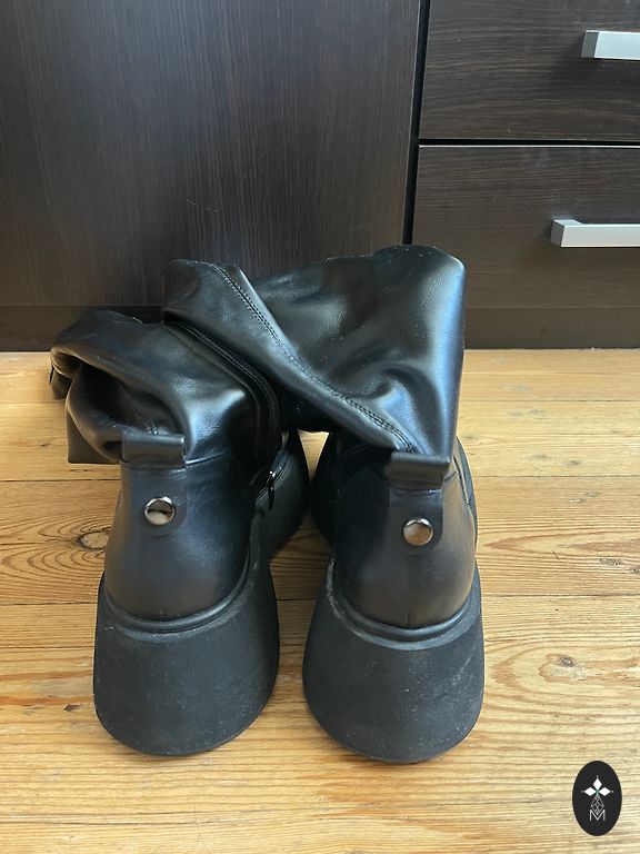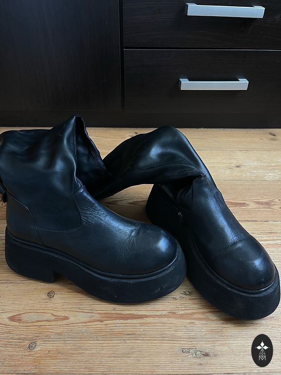 Ботинки были надеты всего 2-3 раза, но поцарапаны, стоя вместе с другой обувью (видно на втором фото), поэтому цена ниже. Если есть вопросы, смело пишите!