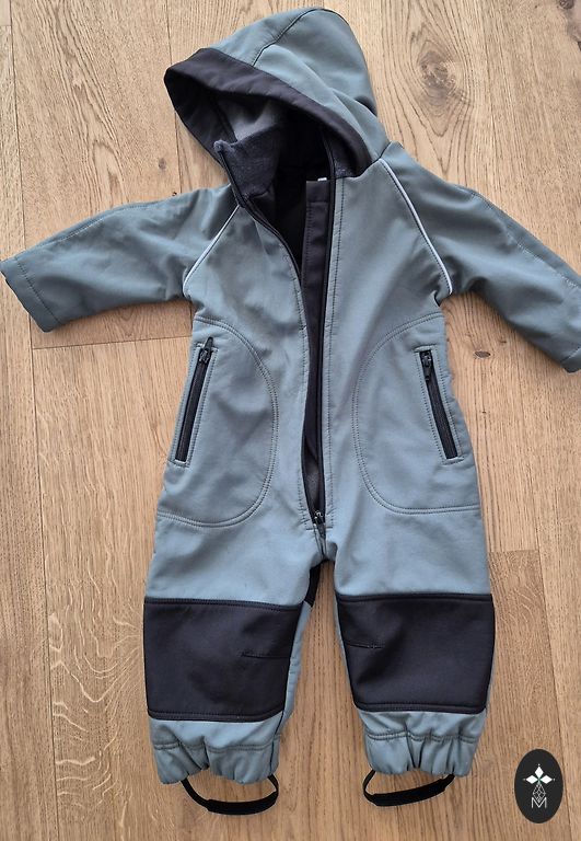 Plāns softshell kombinezons, iekšpusē flīsa. Vilkts pāris reizes. Kapucis noņemams. Garums no vidukļa līdz kājām -45cm, pilns garums-70cm. Ērts un viegli kopjams.