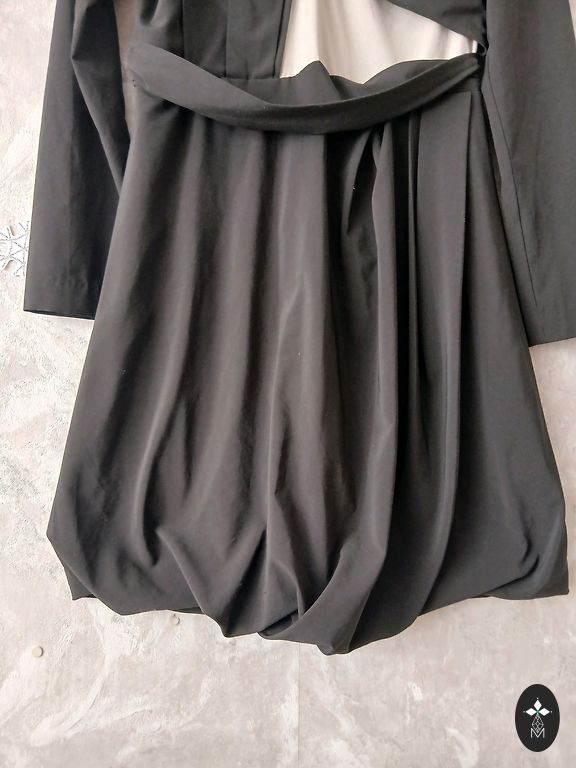 Vabalt langev soonikkoes kleit kõrge kaelusega. Pehme, elastne, mitte paks. A-siluett. Küljetaskud. Rinnaümbermõõt 104-114 cm, pikkus 97 cm.