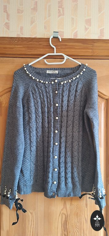 Длина свитера 80 см, ширина груди 80 см, длина рукава от плеча 56 см.