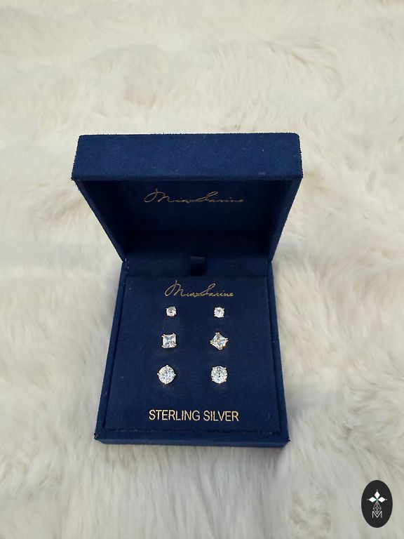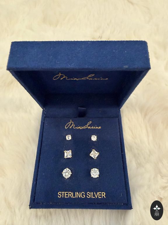 Sudraba 925 proves auskari un gredzens 17.5 izmērs Rodija pārklājums