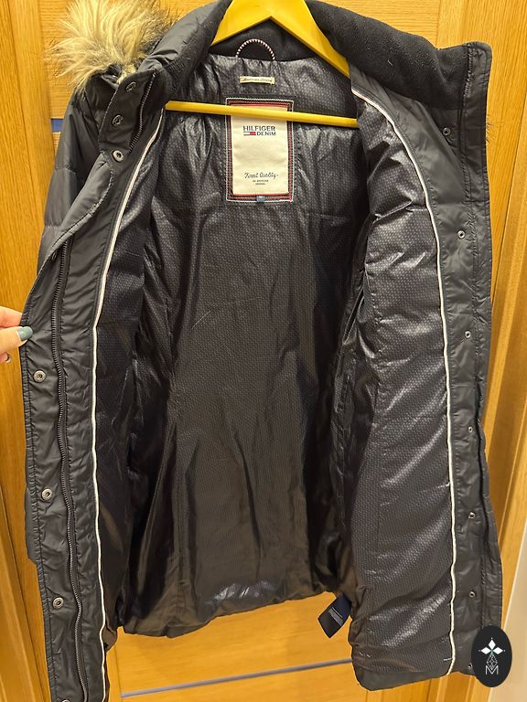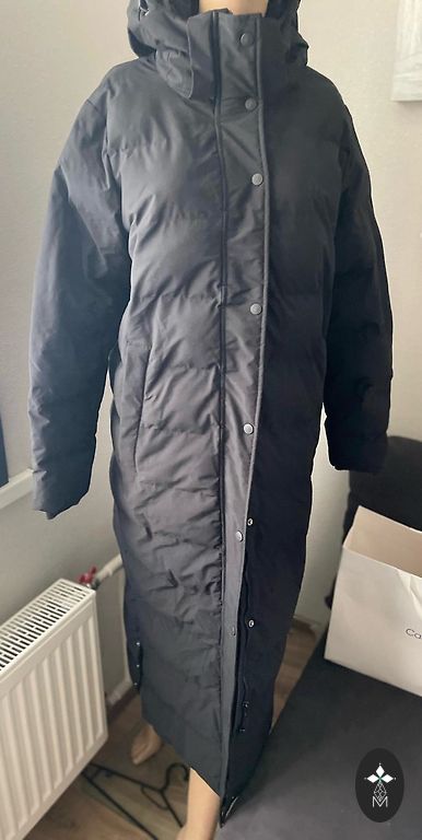 Sobib õigele S suurusele. On kapuuts. Nähtamatud taskud, soe, kuid väga külma talve jaoks pole hea. Jahedaks sügiseks. Needidega.